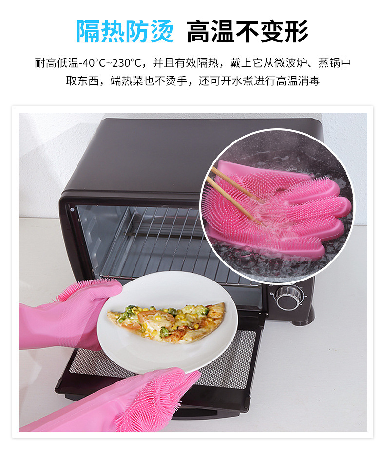3.手套易清洗徹底不滋生細(xì)菌,這一點(diǎn)是很多清潔用品都做不到的,油脂、醬油、醋、污垢等等都無法有力附著在硅膠表面,而其他比如鋼絲球、海綿塊、洗碗布等等材質(zhì),都做不到,使用硅膠洗碗手套實(shí)在是讓人放心。
